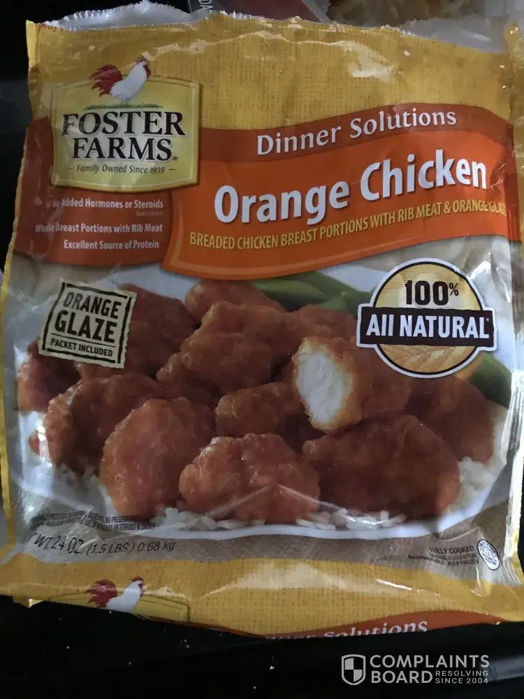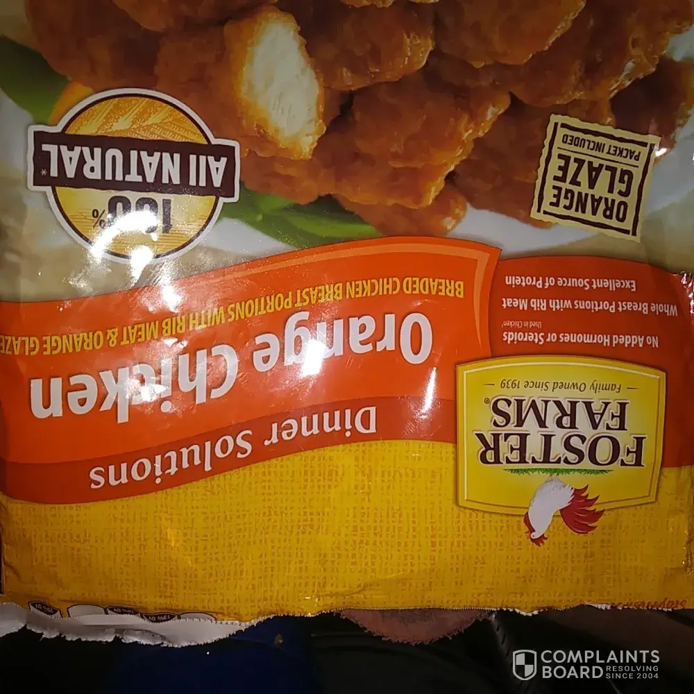 I made a bag of your Foster Farms orange boneless chicken that's supposed to be fully cooked about an hour ago for me and my three and a half year old and a. I've bit into one of these boneless pieces of chicken and had a bone in it that cut my lip and I'm wondering what I can do about it now I've taken pictures and I need to know who to call