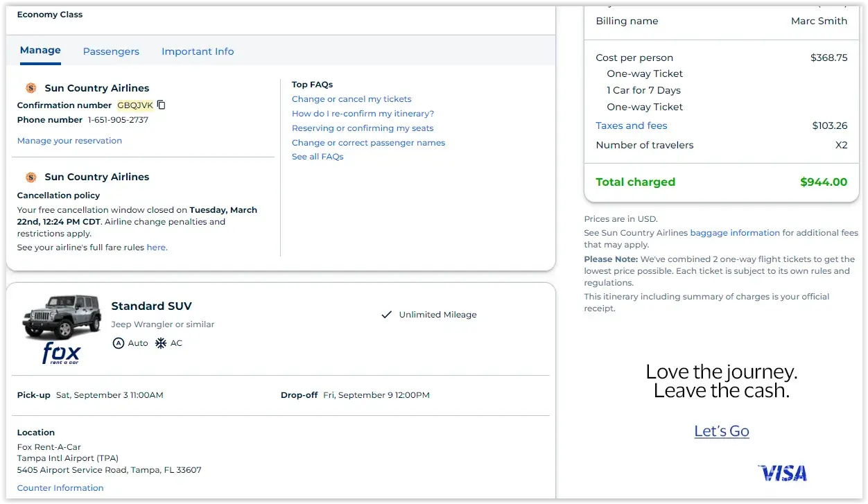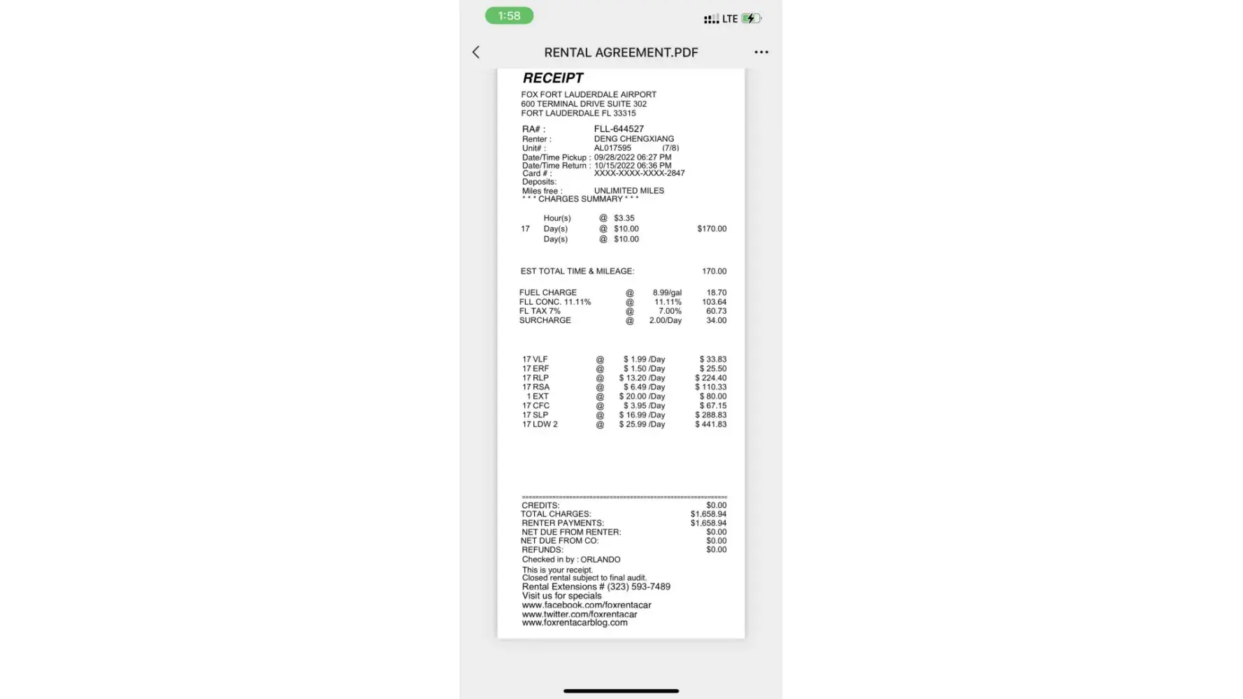 They also need to knock the price down and take off the Fox Rent-A-Car issued liability insurance as it wasn't required.