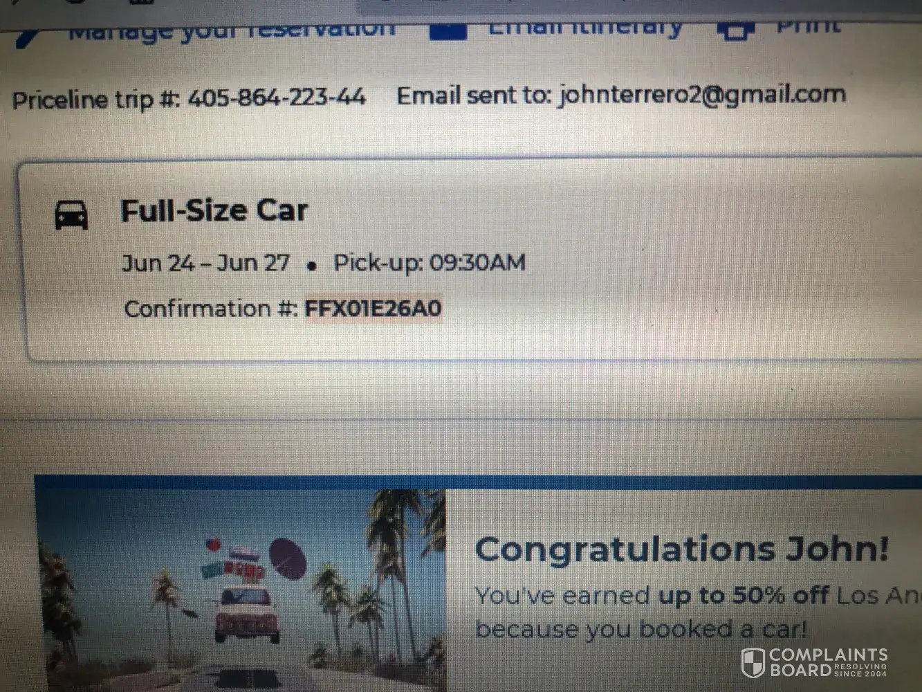Desired outcome: Discount on my rental car in this dates and apology from the company due to a such lack of care