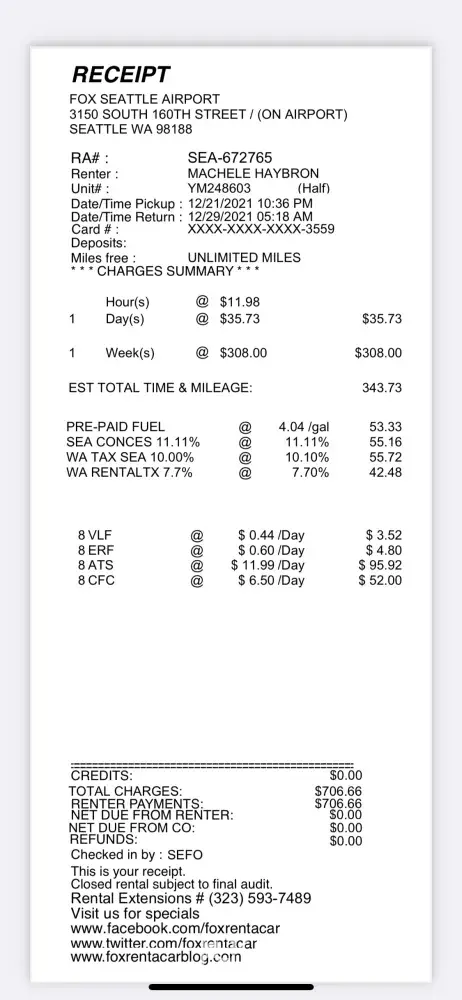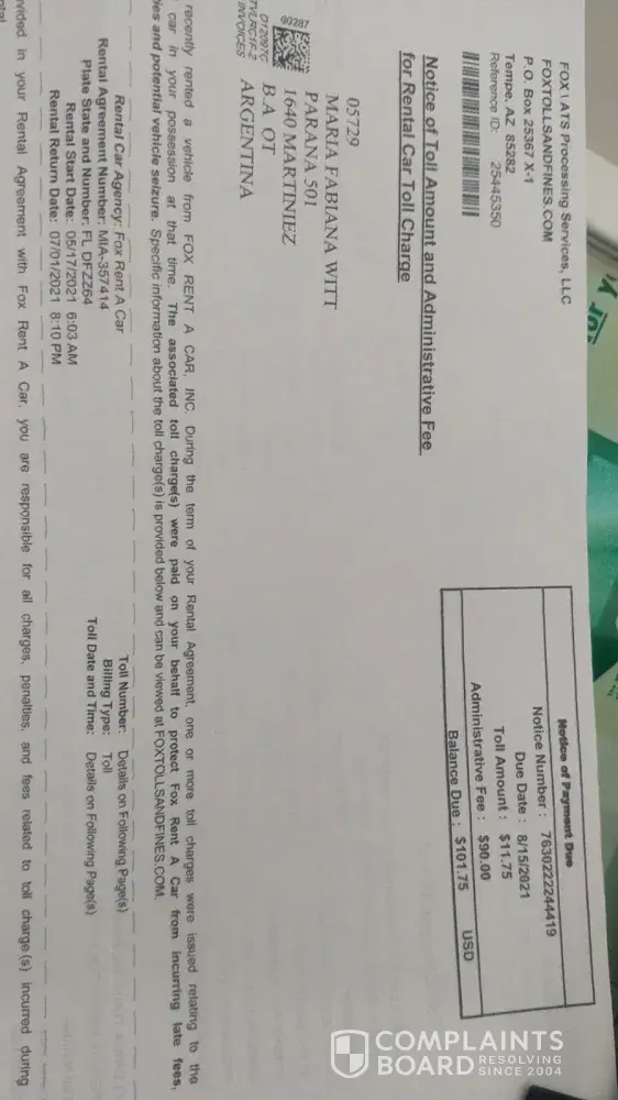 We arrived on April 5 to pick up vehicle at Fox rental .. many people waiting to pick up and there were a few issues at the counter. The agents at the counter at the time we’re a little overwhelmed with all the situations going on. When we finally got to the counter we were never 100% explained how refueling the gas at the end of our rental or the toll situation. We were charged a complete full tank of gas at the end when we actually had over a half a tank of gas. The agent made it sound like they just you pay for 4.14 a gallon for whatever the remainder of the gas is needed to refill the tank. And I had to completely pay $78 to fill the tank when there was over a half a tank of gas in the vehicle. That’s absolutely ridiculous. Also they were never explain to us how the toll situation works, if they had explain to us that we were going to be charged the administrative fee, naturally we would’ve been able to take care of it prior. But I really don’t know how do you take care of that just can’t have a easy pass in the vehicle to just pay the five dollars worth of tolls instead of $90 in administrative fees that is absolutely unacceptable. I know that they stick all of this information in a contract but when you’re coming in from out of town to vacation, and you’re in that excited mode, you should be 100% explained how these work so you don’t get charged astronomical fees after you finish your rental. Just to finish I, paid $238 to rent a car and ended up paying $180 for additional fees, does that sound reasonable? Explanation and communication with these two issues should be communicated to people that are coming down to vacation and expect really good customer service. I really hope I can receive a call or if I can get a phone number to further discuss my displeasure at the end of my trip with Rental from Fox company. Peter Rubino -[protected]