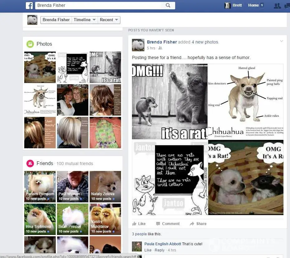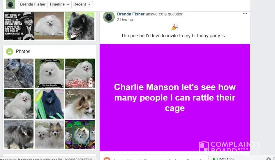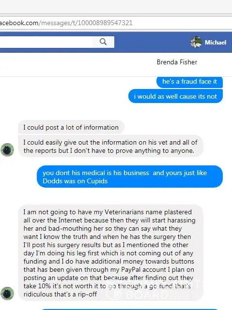 Brenda Fisher is a phony on face book she abuses animals & killed her own pet Buttons over sedating him with medications while she collected funds from him thru Go Fund Me and other ways $2600.00, She has attacked good dog breeders, users on face book & other dog breeds calling Chihuahuas Rats, In this scam report we will prove that she is indeed a serial scammer, fraud, phony with a false face book name and narcissistic sociopath with narcissistic sociopathic behavior in attacking animals & her make believe husband Danny Fisher for attention. She ask funds for her dog Buttons and kept the poor dog on so many drug medications he died of a seizure, Button never had any surgery he suffered great pain, She claims a breeder sold her a bad dog with bad genes, When fact she was feeding this dog pork, medications and other poison carcinogens killing him slowly because she was not happy the way his appearance looked as he aged, he was only three years old when she killed him, She was over dosing buttons on drugs like Trazodone, & Robaxin keeping Buttons sedated most his life, On her personal wall she has called dogs stupid and other nasty names.On a web page she created, she slander Chihuahuas suggesting beating one over the head with crow bar. She is a Charles Manson fan, loving this serial killer showing almost certain proof she does have narcissistic sociopathic behavior problems. Please take our advise and block this very dangerous criminal, animal abuser and con women from your face book, This person does not deserve any animals in her care, Brenda Fisher also has relations with Art Smith, Dominick Tambone, Randy Boles alias Randi Mee from Foxies Fund Inc. in Norcross Georgia. and Foxies Fund face book group that has been proven frauds. Most that know Brenda Fisher on face book knows she tells stories that have been fabricated, In this comment for scam report we will show evidence that Brenda is indeed a breeder & scammer, She did ask funding help for her dog Buttons which she killed with medications & kept the money to buy a new house, People that donated to this scam artist and narcissistic sociopath are just about stupid as a box of rocks, Open your eyes people there is no such women as Brenda Fisher or husband Danny Fisher, These stories are fabricated by this narcissistic sociopath that loves attacking others on Facebook & playing people for fools, She really is one that can pull the wool of the publics eyes, with collecting from her dog Buttons for a down payment on a new home not long after the Buttons Funding Scam as this report shows. She also owns rental property but needed funding for her dog, that's fraud, You been scammed if you donated to this nasty witch & to top that off calling little Chihuahuas Rats this is no dog lover, She loves possession, yours if she can scam you out of them with her many fake face book accounts she creates, BEWARE OF BRENDA FISHER ON FACEBOOK !