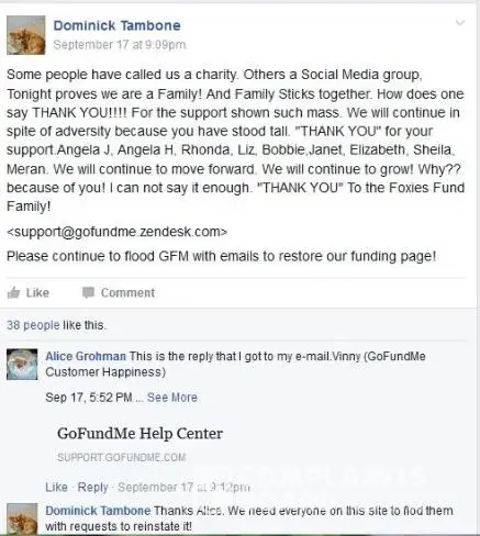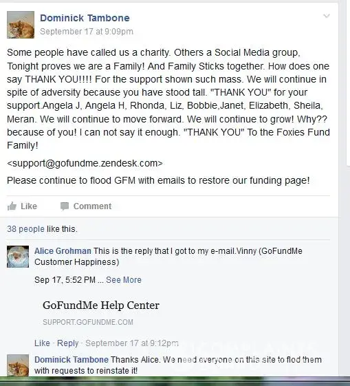 How did Art Smith from Foxies Fund rip off other from pay pal, Art was the web page builder, behind the selection button it may say $5.00 but really it could have been $15.00 recurring monthly, secure pay pal station has a area where you type in the amount that you want to donate, screen shots provide show proof of this also Art Smith was tampering with the page that was froze and can no longer run her scams, Foxies Fund had to create a whole new page with a now secure pay pal system take caution in donating to charities like Foxies Fund Art is always coming up with collection scams, Now Randy Boles you can kiss our [censored], proof shown that the web master froze the page, this makes a Go Fund Me froze for fraud, You Caring Froze for Fraud and now a whole damn web page, Also here is 100% proof of Tambone cying to his members send in emails to have his first Go Me Opened back up it remains frozen to this day or being fraudulent