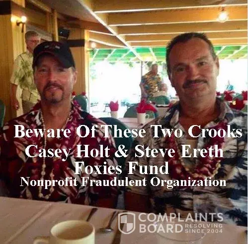 are drawn into their scam to collect to fund their lavish lifestyle, Randy Boles another fraud that helps the group claims Casey mother left him with plenty of money when she passed away, now a good question is if he was left with money than why ask for funds for Foxie's 16, 000 vet bill, The whole thing was set up to fraud others on face book and true bleeding heart story of scamming others, The group has also attacked innocent people that have caught or call them out for fraud, Their first big scam was Cyndi Pomlover real name Cynthia Foster a prostitute scammer claiming her dog Charlie broke his leg, The face book group added her as a Admin later removing her when she was exposed, This was the fastest recovery of a dogs broken leg ever, just remove the tape & popsicle sticks, Art Smith has since remove Cynthia Foster videos on Charlie, Steve Ereth only donates $5.00 dollars a month to Foxies Fund, Although you can see he lives high on the hog from fraudulent donations that pour into this fraudulent organization, Screen shots show clear 100% proof Dominick Tambone's Go Fund Me was frozen for fraudulent activity. Art Smith has since remove Cynthia Foster videos on Charlie, Steve Ereth only donates $5.00 dollars a month to Foxies Fund, Although you can see he lives high on the hog from fraudulent donations that pour into this fraudulent organization, Screen shots show clear 100% proof Dominick Tambone's Go Fund Me was frozen for fraudulent activity