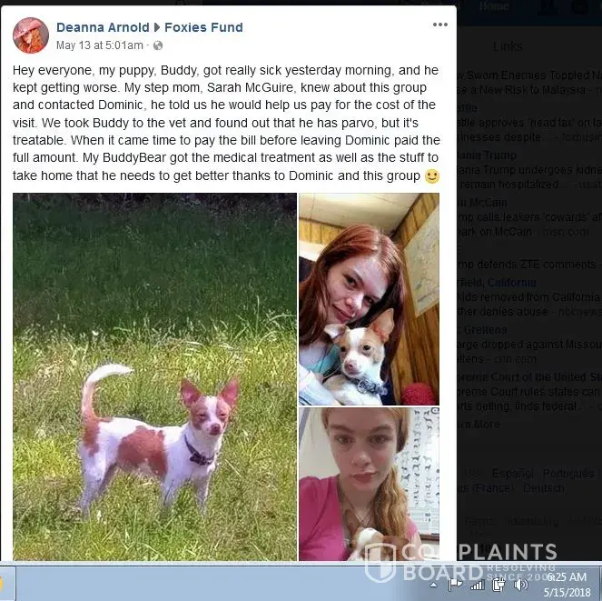 Randy Boles a convicted felon helped China McQuire real name Sarah McQuire and Sarah's step daughter Deanna Arnold well known scammers to our Fraud Investigation Team, pull off a collection scam for Art Smith and Dominick Tambone Facebook group Foxie Fund for a quick cash scam Randy Boles was also involved in many other bogus sick pet set up scams in the Facebook group Foxies Fund . If China( Sarah ) McQuire and her Step Daughter is making $60.00 a hour in the self employed massage business CHinas Magic Massages, Maybe their pets should not be so sick all the time, like Deanna Arnold's with the bogus parvo case that was posted in the Foxies Fund Facebook group and Randy Boles Facebook wall, now we can prove the Dog Buddy is still very much alive and has grown.