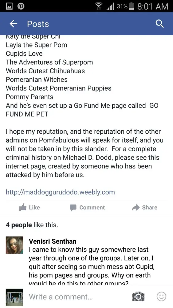 Randy Boles alias Randi Mee, Liz Harrison & Brenda Fisher the three of them are the worst of the worst handing out a web page called maddoggurudodo.weebly.com that displayed verbal animal abuse and suggested physical abuse three years back, None of them should even be allow in Facebook Dog groups, all of them are also frauds in the promoting of Foxies Fund Facebook group & attacking others wrongfully, We have 100% proof of evidence be on a reason of doubt, Randy can hire all the attorneys she wishes, She drew first blood blaming Dodd on reporting this fraud and scammer Dominick Tambone's Go Fund Me, Go Fund Me shut his account down because he is a fraud, so did You Caring Inc. Than Randy Boles alias Randi Mee, Liz Harrison & Brenda Fisher attacked this man's pets with display of verbal animal abuse and suggesting physical abuse .Randy Boles is nothing but a drug addict, drunk and narcissistic sociopathic liar all 3 of you are narcissist sociopaths and master manipulators, That enjoy attacking people and animals that don't fit their approval on Facebook, Facebook harassment and promoting graphic violence violations can also proof this be on a doubt, Evidence shows Brenda Fisher passed the link maddoggurudodo.weebly.com in the group All Pom No Drama at the time she ran the group, She has since been removed as a Admin and blocked, Randy Boles and Liz Harrison passed the link out maddoggurudodo.weebly.com in her created group pOmFaBuLouS where Randy Boles was her Admin Liz Harrison also order her Admin to attack Michael Dale Dodd and pass the link out maddoggurudodo.weebly.com to his members, Liz Harrison now sells Rodan + Fields on her new created Facebook account and page https://www.facebook.com/eharrison.myrodanandfields/ . She sure needs the product for her ugly face! We sure are ready for any court date, with these Narcissistic Sociopathic lying Drama Queens everything has been printed out in files and ready to go. Links provided for these women that all thought was so wonderful ! Randy Neumann Boles Past Inmate Number W077414 Ohio prison was Incarcerated State Prison Term 5 years, Should be Monitor for future crimes.For those that visit that web page maddoggurudodo.weebly.com they don't need to own dogs also, their a bunch on pathetic animal abuse supporters