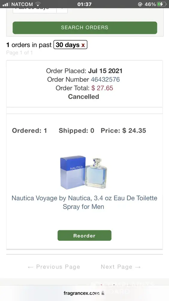 FragranceX.com Cancelled order