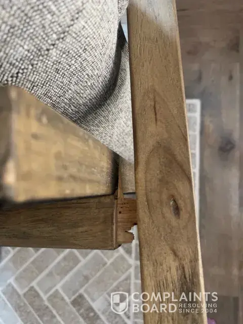 I purchase two chairs and two nightstands in sept of 2021. Receiving the items took forever. After multiple emails, phone calls and hours wasted, I finally received the items in January of 2022. One year later, one of the chairs that was over $1000, split at the joint. I contacted customer service and they had me fill out a form, complete with pictures, receipts and videos of the damage. The claim was denied because they evidently have a 3 DAY AFTER PURCHASE claim requirement. Which means , after 3 days they do not offer any sort of product assurance. For a $1000 chair to last a year is absurd and their customer service is hard to reach, passive and negligent.