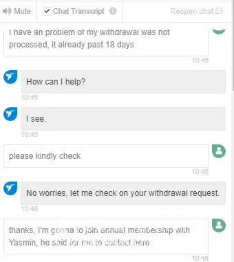 But it was still in the pending status in 11 Jan. I said to live interview to Elvira T. and she accepted my concern. But just next morning my account was closed.