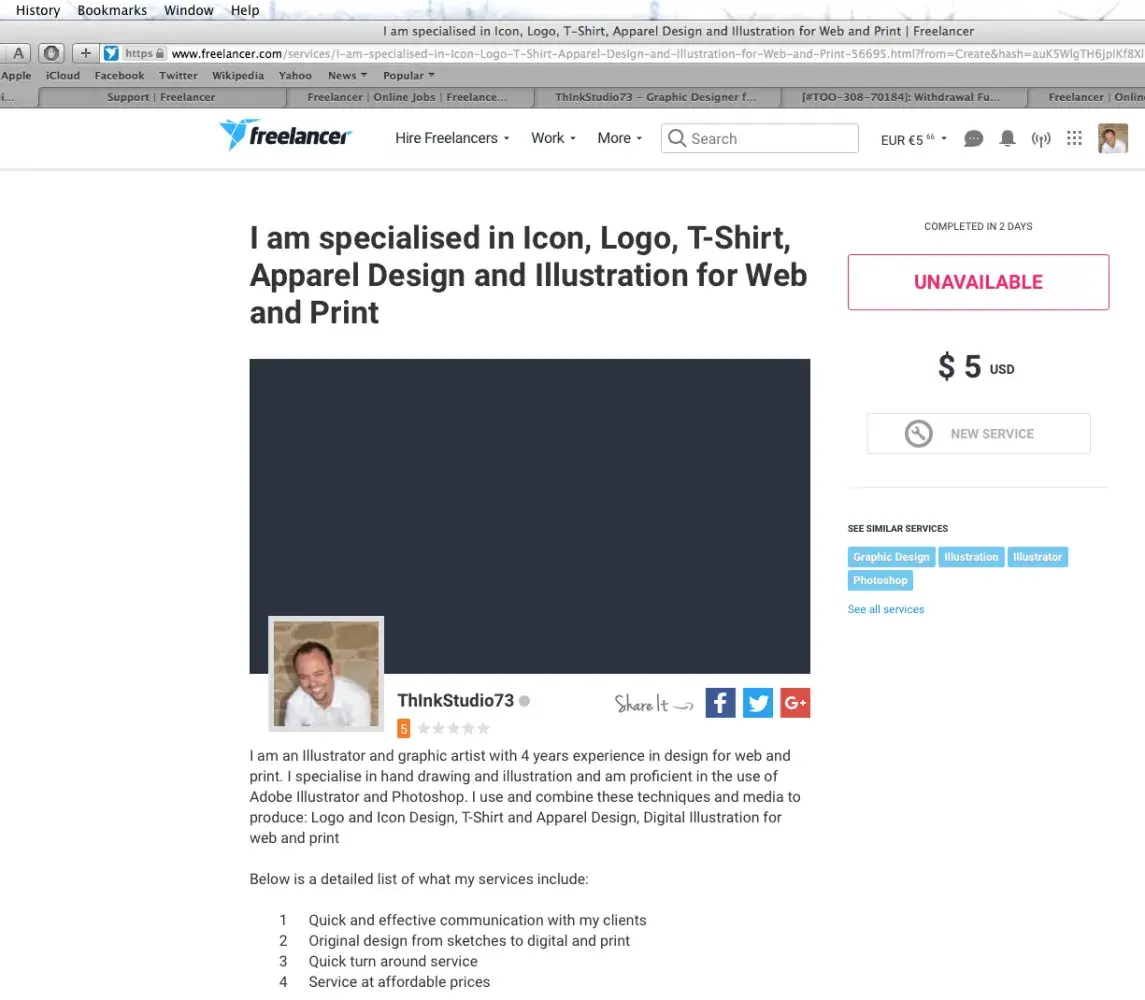 I can't add a service in the section my service. I tried to do it from last september 2016. I don't understand why i'm not allowed to add the service. I've just sent a request again 2 days ago and I got the same answer "service unavailable". My profile is filled and updated, I have positive reviews, my payment, phone, email and identity are verified and I don't have any record of copyright infringement during my work as a freelance designer in freelancer. com. I saw another member that has just registered last february that has added his service even though he doesn't have the payment verified and I notice looking at other freelancers profile that very often more then one verifications is missing but they were still able to add their service!