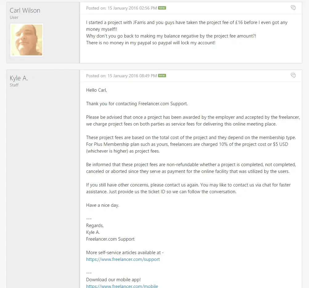 October 13, 2015 ticket = nfj-[protected] joined for the 1st time, wanted to simply see what it's all about. 1st impression was.. hey, you can get anything done without risk using our milestone deposit and get the money back if you decide not to hire the freelancer. = you made a hire me offer to xxxxxxxx but they are unable to accept your project: = oh they are slick, tried to withdraw funds of $150 and to cancel the project as a $5 fee. ok, so I loose $5 and get my $145 back - right? please verify your account, your 77% done. already had my cc verified and they wanted paypal and more.. I canceled the cc verification, reported the fraud to my cc and bank. nothing from them too, except they offered to send new cc card. interesting enough I checked my bank and no withdraw. I filed the ticket and guess what? no reply, but they tapped my bank for $153 so they can't count either. = thanks for getting in touch. just letting you know we have received your inquiry and our support team will get back to you in a few days. for your reference, here are the details of your ticket: ticket id: nfj-[protected] subject: withdraw funds department: general status: open = they are in australia - maybe, who knows the truth. stay away from them.. far away. you get what you pay for and in my case I ordered nothing and loss $153