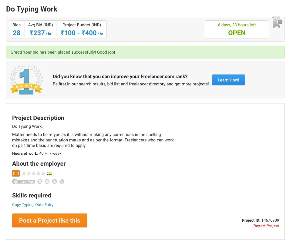 Freelancer offline typing work details