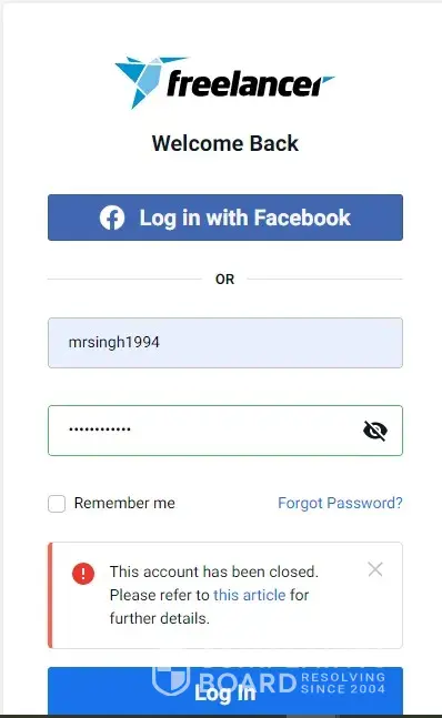 "Thank you for contacting Freelancer.com Support. We regret to inform you that your account has been closed for violating the Freelancer website in accordance with the Freelancer User Agreement found here at https://www.freelancer.com/about/terms