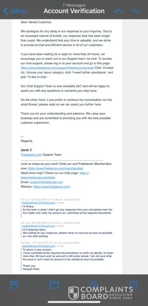 I urge Freelancer.com to take immediate action to resolve this issue and provide a more transparent and responsive customer service experience. If this issue cannot be resolved promptly, I will have no choice but to escalate this matter to legal authorities.