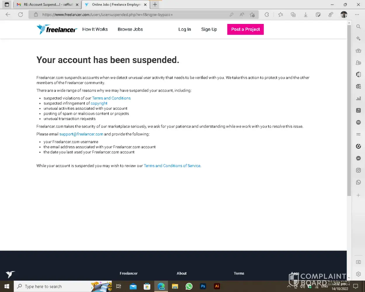 Freelancer.com please review and cease my Account suspension, let me know reasons, I want it back.