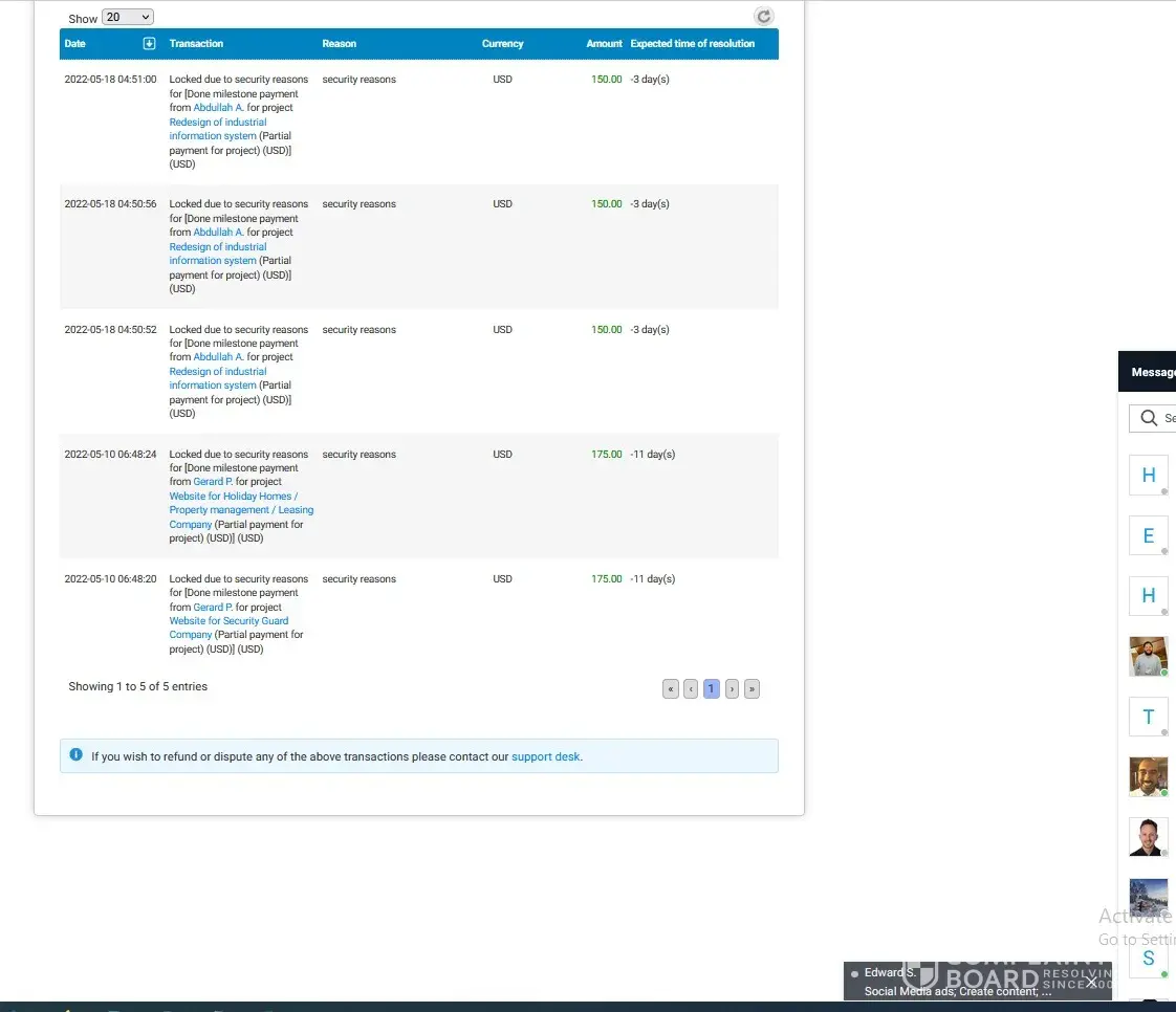 - stole the milestone payments that should be paied to my freelancers held in escrow