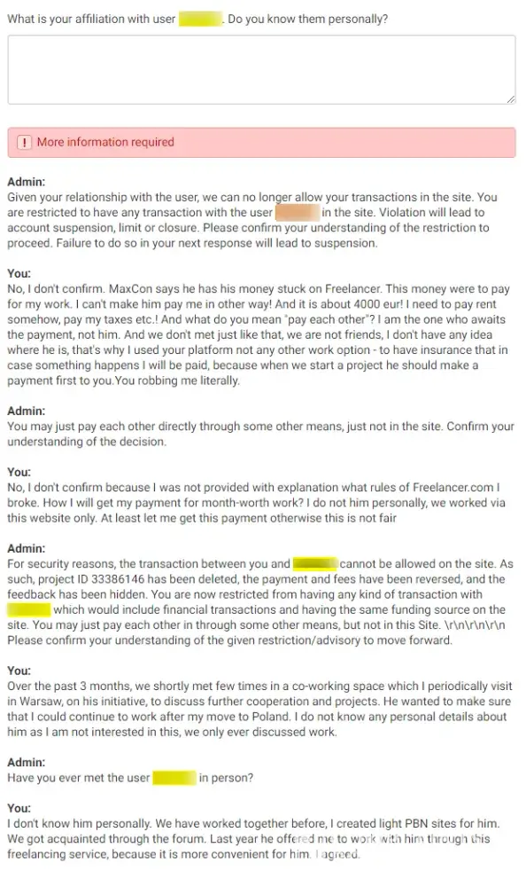 Also, Freelancer did not provide me with the explanation of what rule I broke exactly.