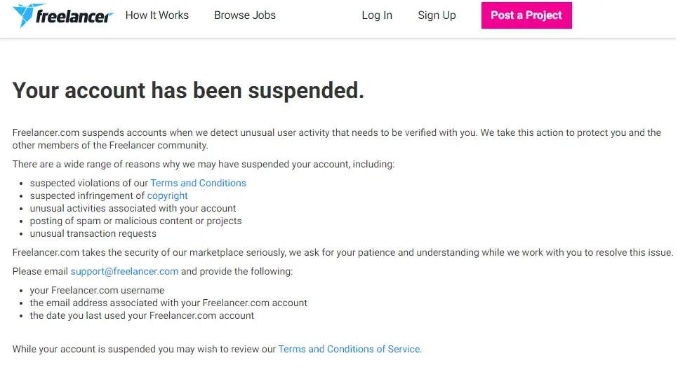 Freelancer now its just suspend freelancer accounts without reasons, and you can't even justify anything to anyone, having very bad support doesn't even know how to speak with you treating you like slave .