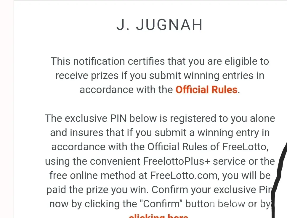 Michelle, because you are on the Paid and Eligible list above, your next step is to verify your PIN # on the following page. It assures you that if you submit the winning entry in accordance with the Official Rules of FreeLotto, using the convenient F.A.S.T. service or the free online entry method at FreeLotto.com, Michelle Thompson and only Michelle Thompson will be paid $1 Million (One Million US Dollars) in the Classic FreeLotto Game or other prizes.