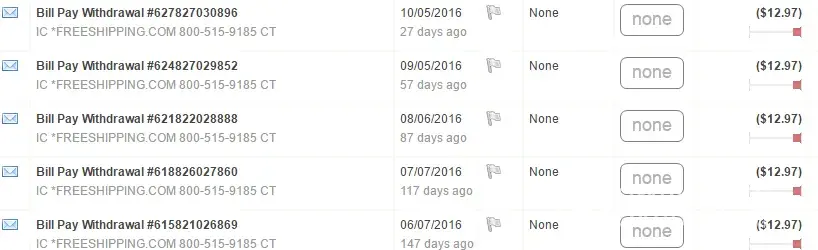I find there is a charge of ic *freeshipping.com [protected] and $12.97 was withheld from my debit card from the above named website on 12/26/2016. I am not sure why the amount has been deductedthe only information I have is the name of the website that took the money from my account. Please refund my account without any delay.
