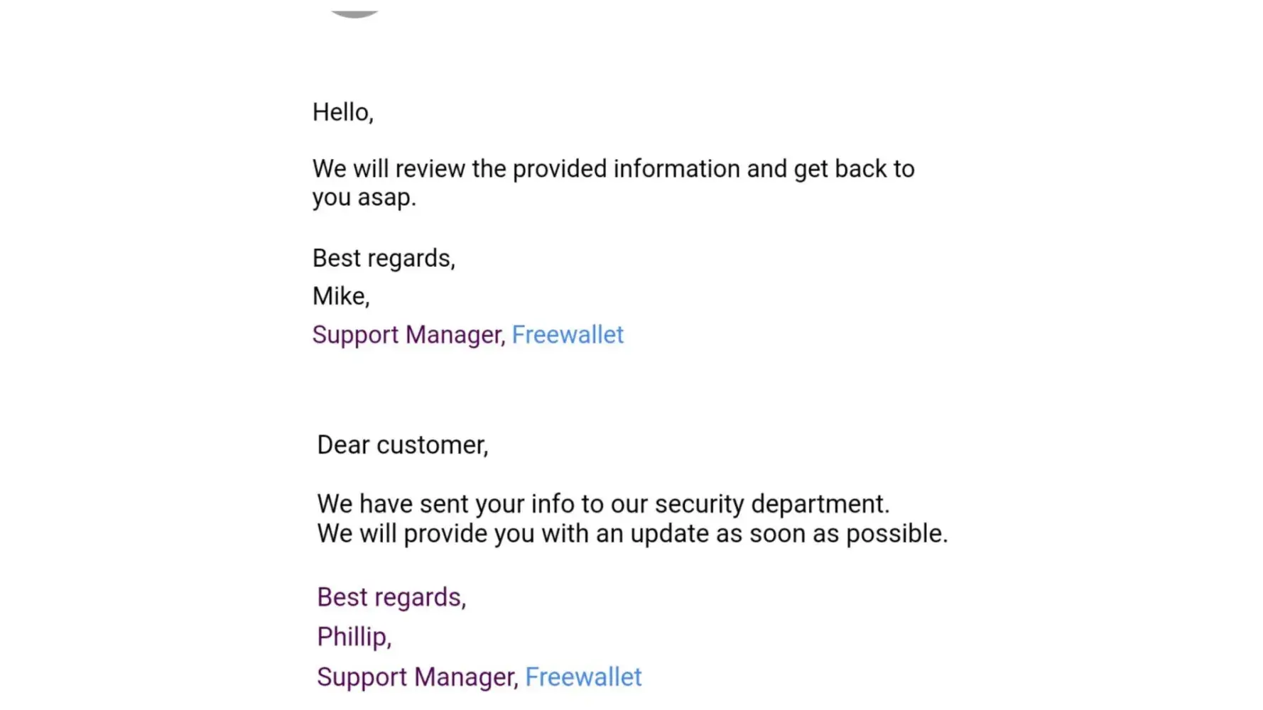 Freewallet’s scam, orchestrated by V. and D, has affected many. If you have any information or have been a victim, please contact us at [protected]@tutanota.com.