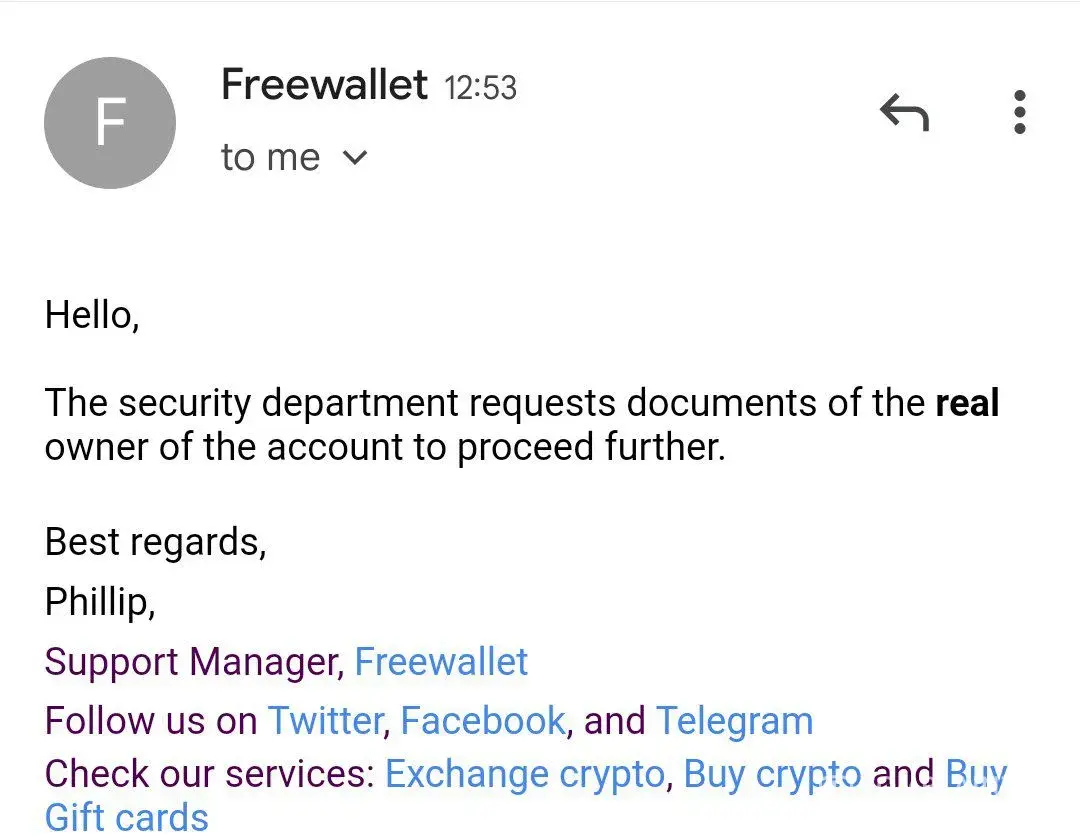 Freewallet Exactly, the funds become untouchable to their owners! I have provided my full information, and everything that was requested of me.