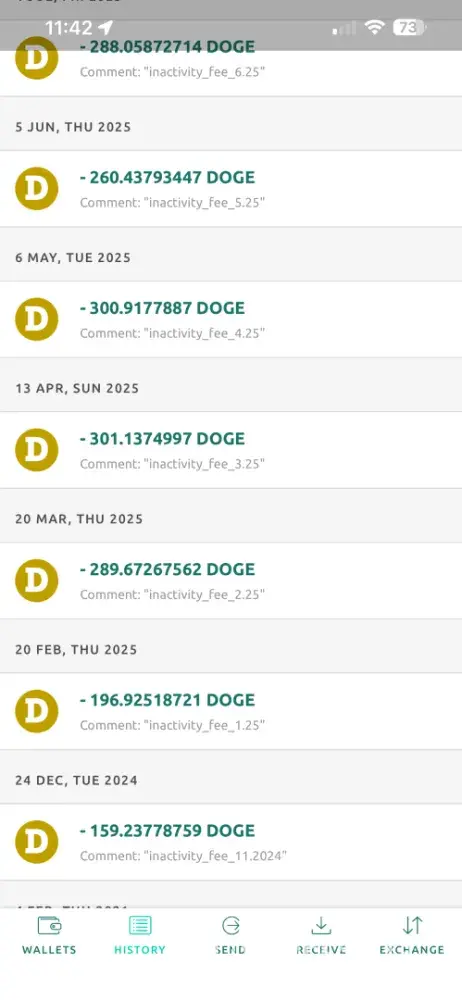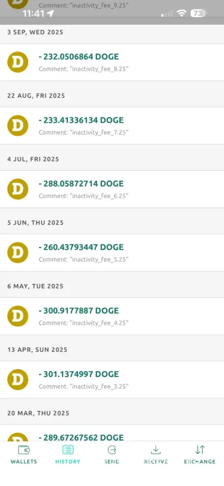 They stole all of the contents of my wallet. I was never legally notified of any change in terms of service and they began charging a criminally large inactivity fee of $50 a month. They didn’t notify me of any transactions in my wallet. My wallet security was set to notify for all transactions. The last email I received from the company was in 2021. It appears they started stealing funds in 2024.