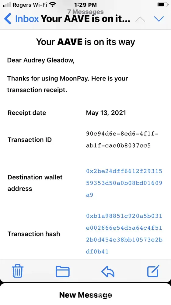 On May 12, I purchased AAVE from inside Freewallet, I have included the screenshot inside Freewallet and AAVE is listed as one of the available cryptocurrencies to purchase, the POS processor was Moonpay. Moonpay confirmed the money was sent. After I purchased it, I went to look for it and there was no AAVE wallet in the app. I alerted Freewallet support and a few days later the wallet was added, but no AAVE in my account. When I contacted support they said the problem was temporary and that I soon would receive my coins, my acct is 2cc9b1c4. I have emailed numerous times but never speak to a live agent only bots, it is a month now and my purchased coins have not been deposited. When I contacted Moonpay about it I was told Freewallet would be able to help me retrieve the coins. The amount to deposit is $245.67 which is the $300.01 minus the processing free.