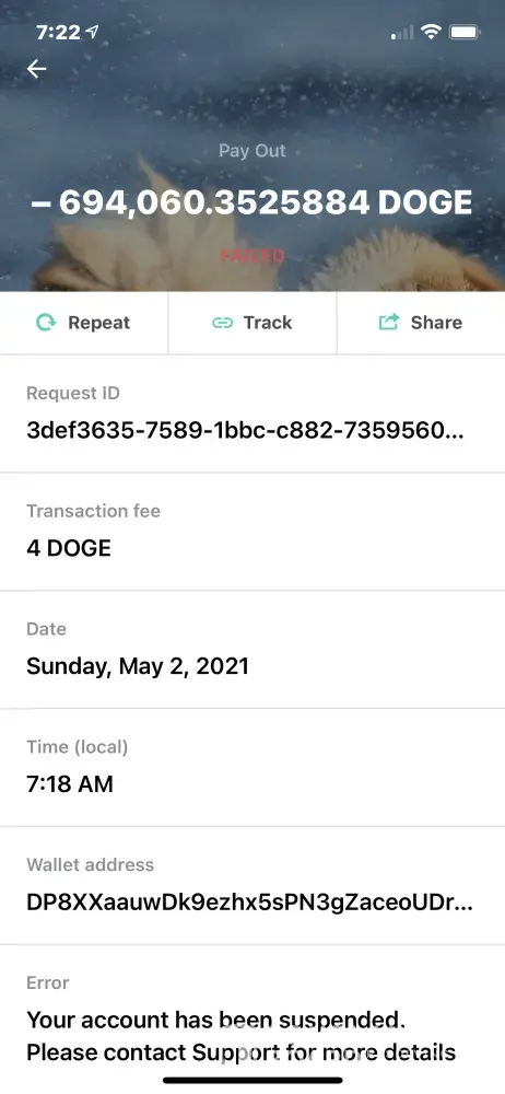 I have deposited large domes of ltc to this account from another wallet converted it to dogecoin and now that I am trying to convert it back to litecoin or any other crypto my account has been suspended.