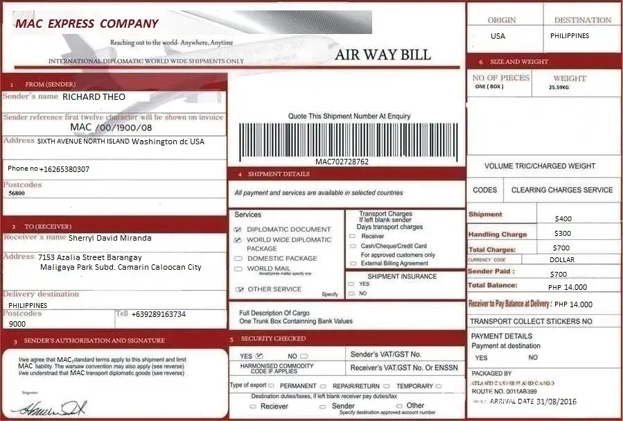 THEY HAVE YOUR CONTACT IN CASE THE PACKAGE GET TO YOUR COUNTRY.HONEY JUST MANAGE THE MONEY WISELY, I SEND YOU THOSE THINGS BECAUSE OF THE LOVE AND TRUST I HAVE FOR YOU SO THAT YOU WILL TAKE CARE OF EVERYTHING AROUND YOU, AND PROVING MY CARE FOR YOU,