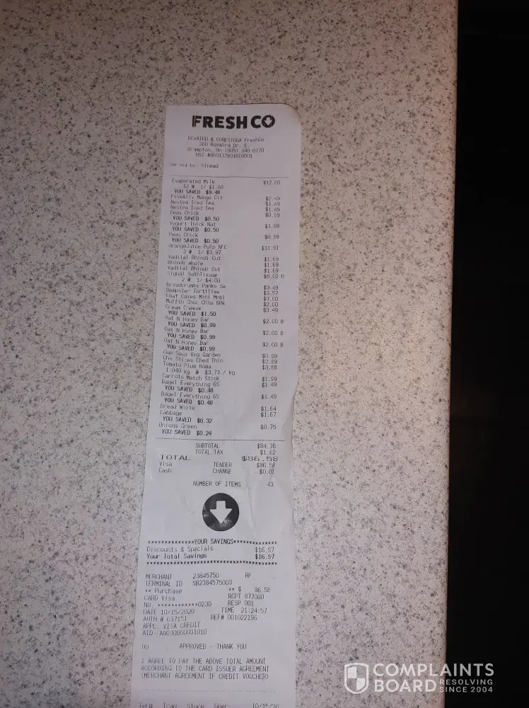 I had a very disappointing experience at FreshCo in Whitby located on Brock Street (south of Dundas) on July 7/21. The cashier was extremely disrespectful. I patiently waited my turn in line and then paid for my groceries. I had purchased approximately $120 of product so it was a fairly large amount of items to pack. There are usually two sides to put item...