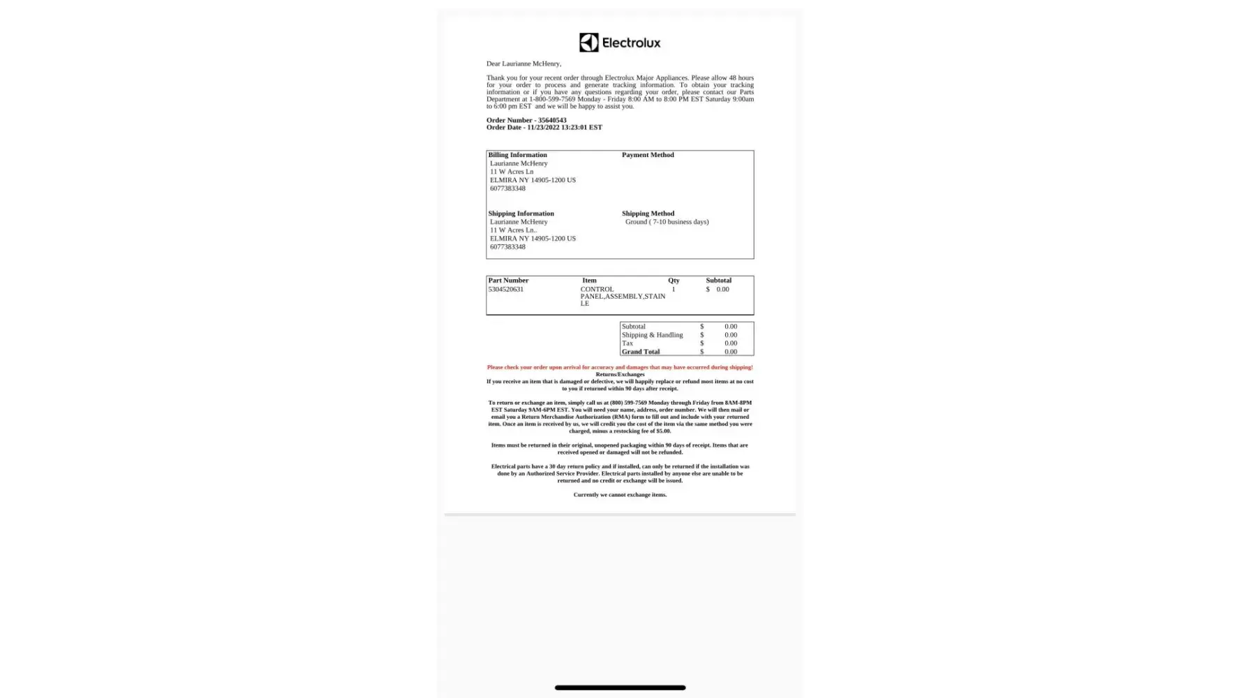 I bought a new built-in Frigidaire microwave 9/26/22 from Lowe's in Horseheads. Microwave was installed at end of October 2022, with kitchen remodel. It was used 3 times and started losing power after 3 minutes of use. I called Lowe's who says their return policy is 48 hours with "major appliances" and would need to go through Frigidaire direct. I called Frigidaire/Electrolux who sent a repair man, Bryan from Fix-It Rite, who noted that the control panel, vent motor and fan motor all needed to be replaced, "not even sure if it's that" and was told that Frigidaire could probably get the parts sooner. Called Frigidaire again and after speaking to multiple representatives, asked for a supervisor. On 11/23/22, I asked to speak to a Supervisor and got Amberlynn. She got in touch with Fix it Rite who was ordering the motors and Frigidaire would order control panel. I was told by Frigidaire "the item was in stock" and she placed a parts order [protected] on 11/23/22 @13:23/01 EST for control panel [protected]. At that time, I asked if a new microwave could just be sent and they told me "no, that only happens after 3 failed repairs". On the parts order it said shipping 7-10 days. Called again 12/6/22 and the part still was not shipped. Here it is 12/21/22 with no microwave and no progression.
