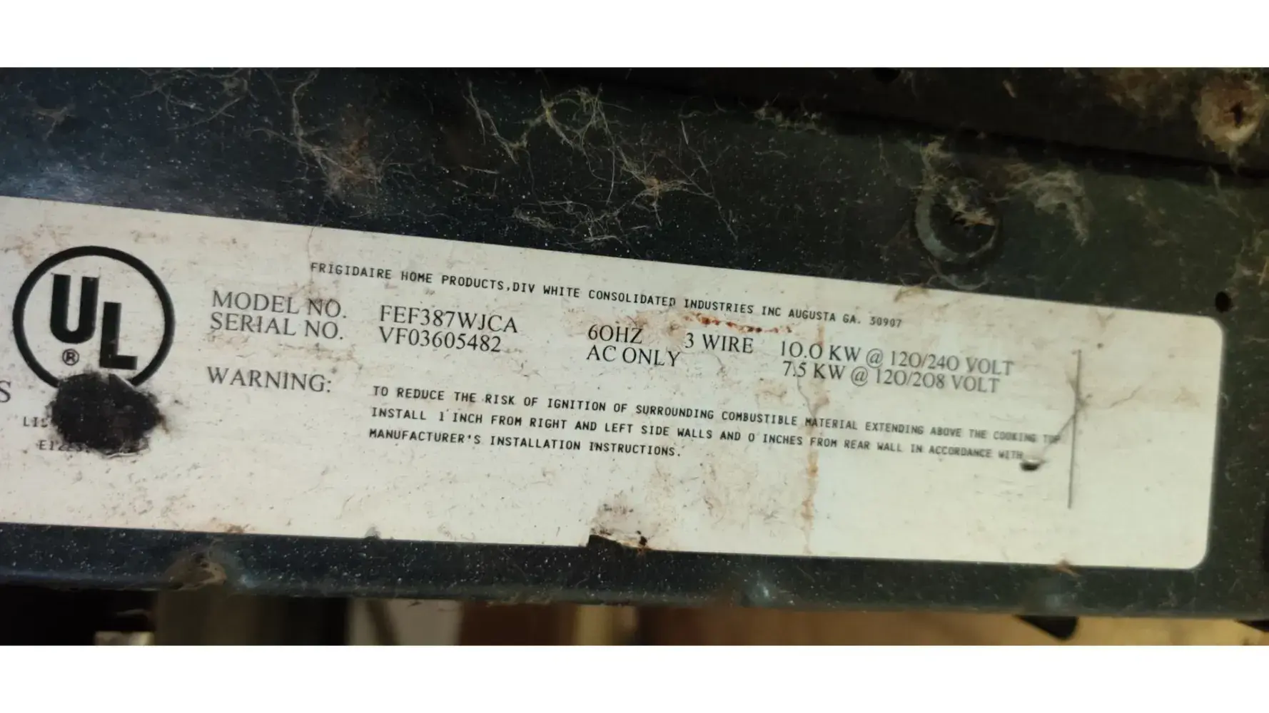 Frigidaire electric smooth top oven began burning the insulation that wraps around the oven compartment. I was using the oven at 350°, then switched the broiler on high. At first I thought it was steam coming from the vent, quickly realized it was smoke. I unplugged the oven but I couldn't lift the top to see what was burning, had to remove 4 screws. The insulation was smoldering and glowing like red hot coals. I put that out with a fire extinguisher and pulled the oven out of the house and then doused the whole thing with my garden hose and called the fire dept. After they cleared the house I looked at the oven and there are 9 factory holes right above the broiler element (one can be seen from the top in the center of the first photo). Why are those holes even there? I've never had an oven catch on fire before in my life. Luckily there was no property damage and the oven came with the house so I'm really not at a loss, but I'm still a little shaken by this experience. I will never buy a Frigidaire product for the rest of my life, that's for sure.