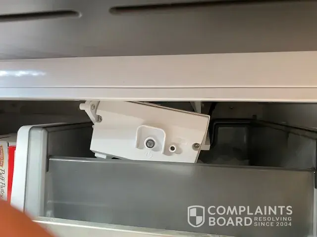 Several days later, I noticed a thunking noise when I went to close the freezer drawer. I bent down and noticed that the ice maker was hanging down and hitting on the inside top drawer in the freezer compartment.