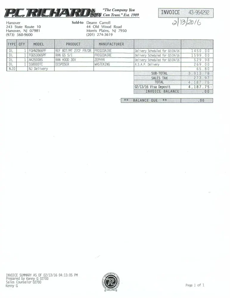Once again I contacted frigidaire. I was told that it was sent to the nearest dealer in my area. OK. Fine. I assumed I would then receive a call giving me delivery time. Boxed the old unit up & waited.