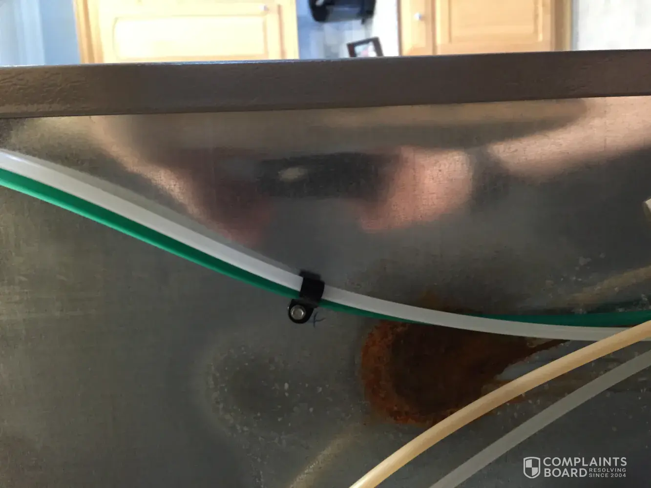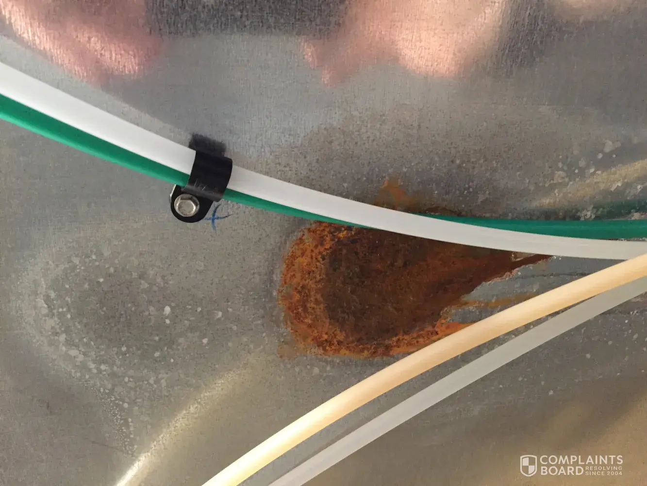 He was told there was a â€fix†for this problem. He was to install a back panel to cover up the damage. That’s it, no repair to the cause of the corrosion, no arresting the corrosion, we’re simply to cover it up. The corrosion will continue to eat away at the back of my fridge from behind the panel until either the back lets loose and it floods my kitchen or the warranty runs out. This is simply unacceptable. If the ice maker is broken it gets replaced. If a hinge goes bad it gets replaced. If a motor fails it gets replaced. That is reasonable as the damaged part is replaced and the fridge is repaired. There is no corrective action for the leaking and corrosion in my fridge. The leak is still there and the corrosion will only get worse. You can see it in the attached photos. It looks like another corrosion spot is forming above the one I already have. We can’t just cover this up and pretend that it isn’t there!