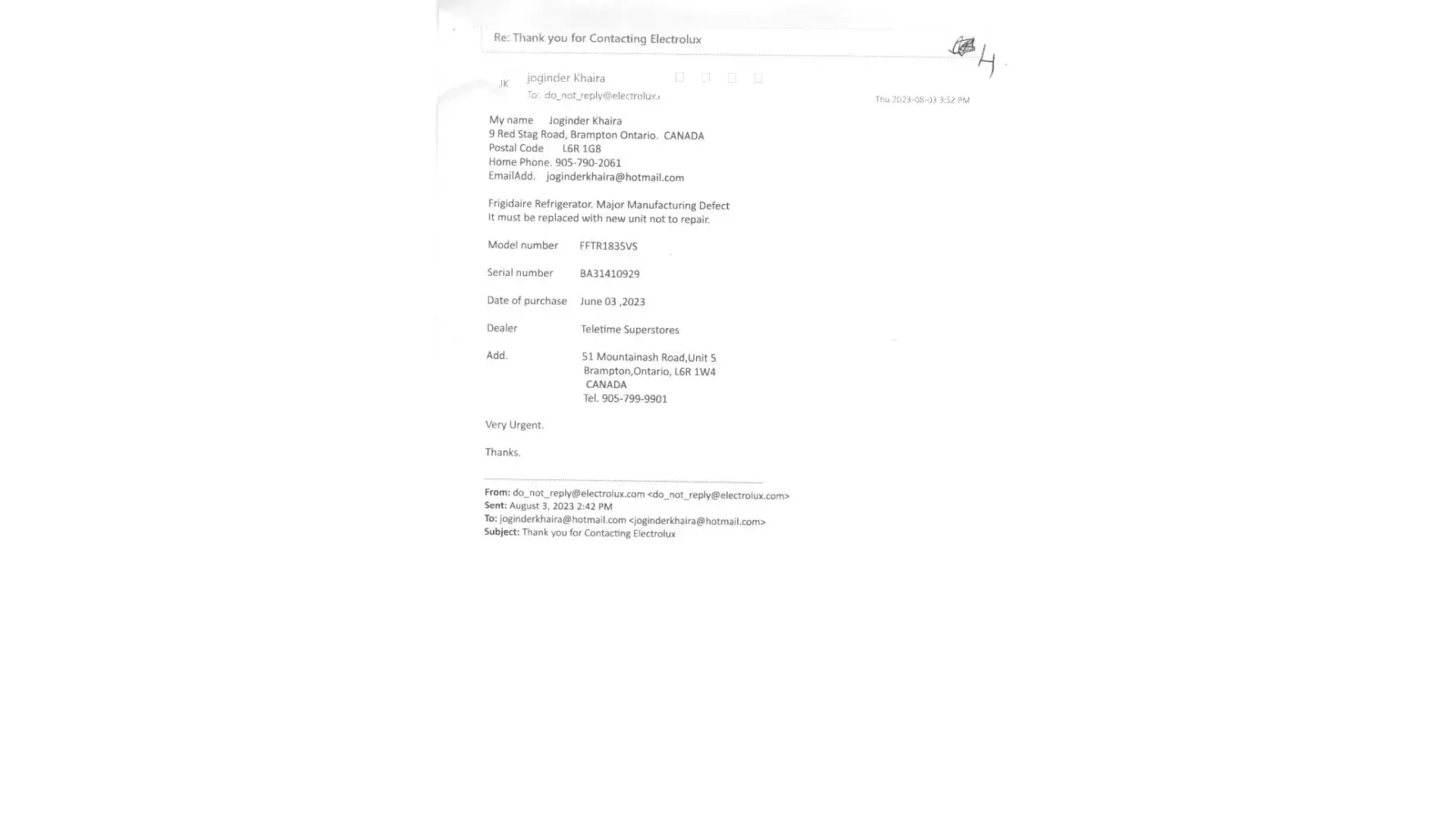 I have bought this unit on June 3, 2023 from dealer Teletime 51 Montainash RD Brampton ON, Canada. Fridge did not work even for 10 days. There was not cooling in main compartment. I have called the dealers so many time no reply and finally I have been told we can not help talk to Warranty personals. Than I have talked to their REP. Their technician reported them that it was major manufacturing defect doors have to be replaced. I told them to replaced the unit