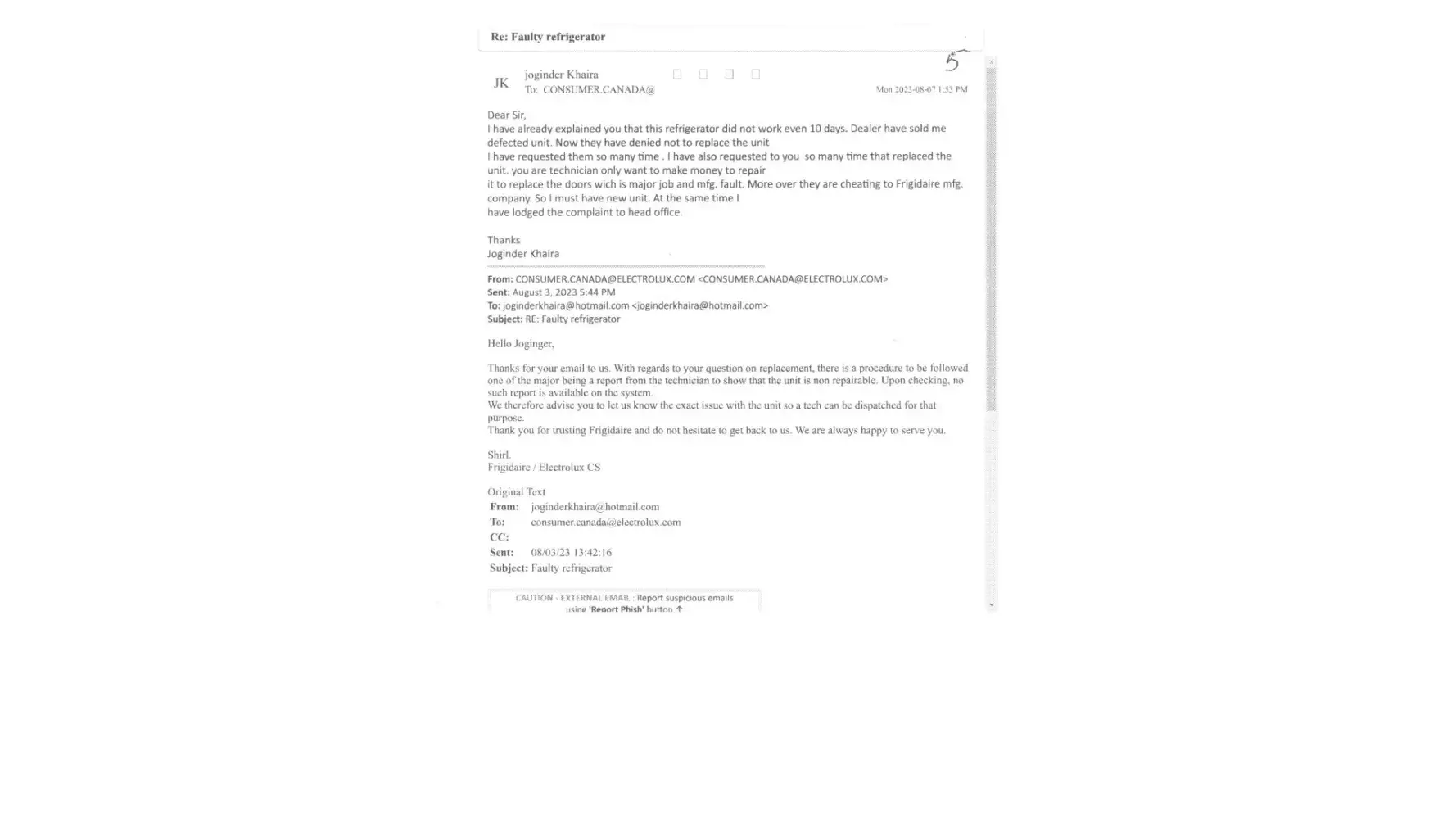 Desired outcome: A replacement since the refrigerator I purchased from them is a lemon.