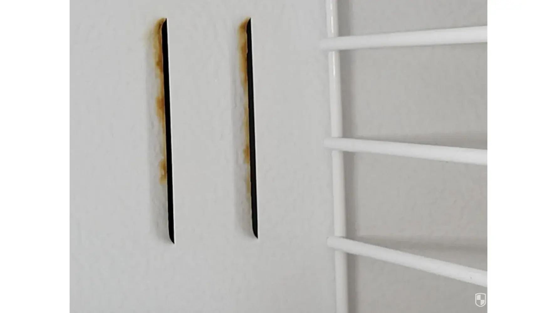 The freezer section has a manufacturing paint defect on a back interior food side panel inside the fridge. There are air vent slots on what looks to be a powder coated metal panel which is the back interior wall surface of the freezer. These slots have rusted on the tips where the surface coating manufacturing process failed to get a good even covering.