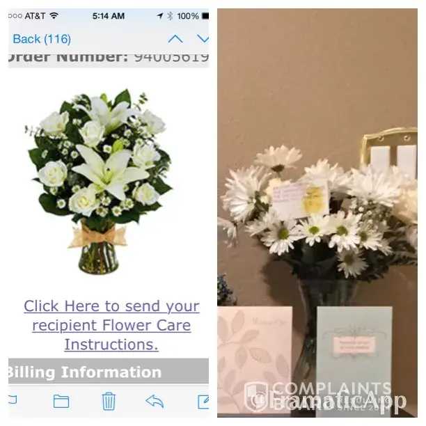 I ordered a sympathy flower arrangement for my friend who's brother had passed away. The arrangement I chose had white roses and lilies in it. I will enclose a picture. Lucky for me my friend posted on his facebook page a picture of the cards, gifts and flowers he received. Much to my dismay I did not see my arrangement in his photo. I texted him and he confirmed that yes, the arrangement on the far right was from us. HORROR! That arrangement looked like something someone fashioned in a WalMart parking lot with cheap daisies and a Dollar Tree vase! Just jammed together! I was mortified! I made a side by side frame of what their email confirmation showed I ordered next to the photo my friend took and sent them a letter of complaint and the only thing they did correctly was reply in a timely manner and give me a full refund. But I was reduced to having to apologize to my friend for the cheap, unattractive flower arrangement that he has been forced to look at and no refund will make up for that! This company needs to shut their doors and stop torturing the public!
