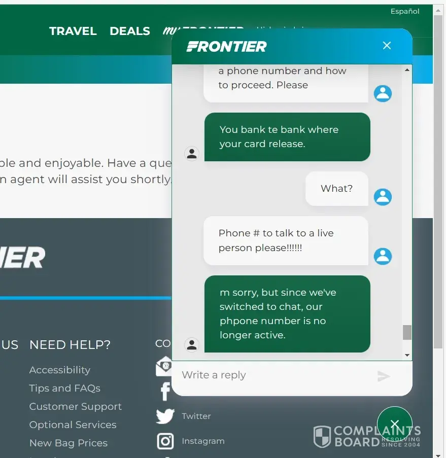 I am completely outraged and disgusted by your airlines customer service communications. I tried to contact your reps by email, chat and also called the airport where I had my flight. I purchased flight protection from your associate CheapOair. I had an issue and needed to change my flight, CheapOair air said they wouldn’t honor the protection I paid for and I couldn’t contact anyone from your Company to reserve another flight. I tried chatting, emailing, even calling Tampa International. None of which responded. I tried chat 6x not one agent came online. I know am out my ticket price and an additional ticket with another airline of course, I will never fly frontier again. Plus the airplanes are disgustingly dirty ! And the agents are nasty, How can you not have a phone contact? I want my $ back, thank you.