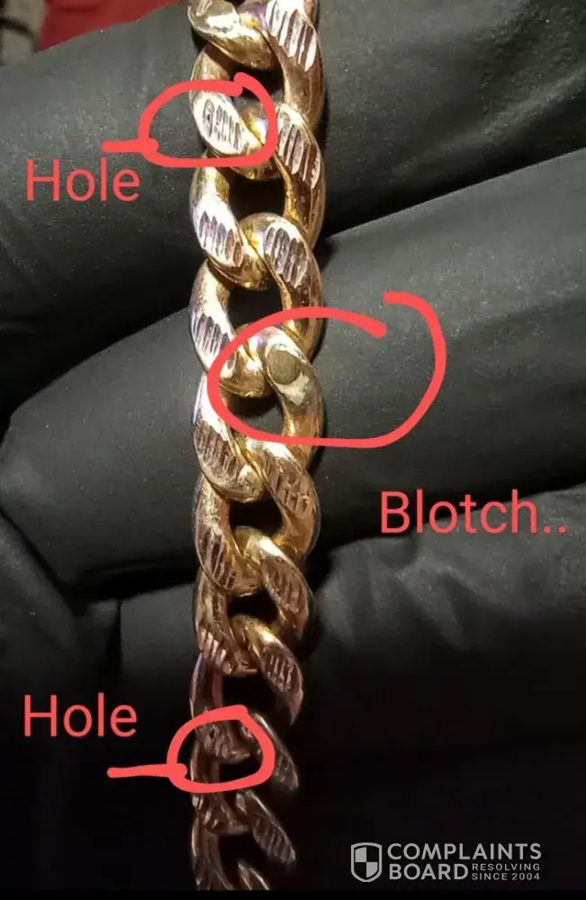 I went to their website to get a 20 gram 9 inch solid gold Figaro bracelet. They sent me a 16.7Gram 9 inch hollow gold Figaro bracelet. The item also arrived dirty with black mud on it. Also it took 8 business days when they advertise 5 to 7. I do not want the incorrect item I would like a refund or replacement. After a back and forth with them they would not honor either. So I told them I would dispute it with AMEX. They then issued a partial refund even though I said by this point that was not an option and I wanted a full refund since they did not send me the correct Item I was not on the hook for return shipping ect. I am still in an argument with them about taking back this Item. So far I am 4 hours into this arguing and I would like help. Thank you