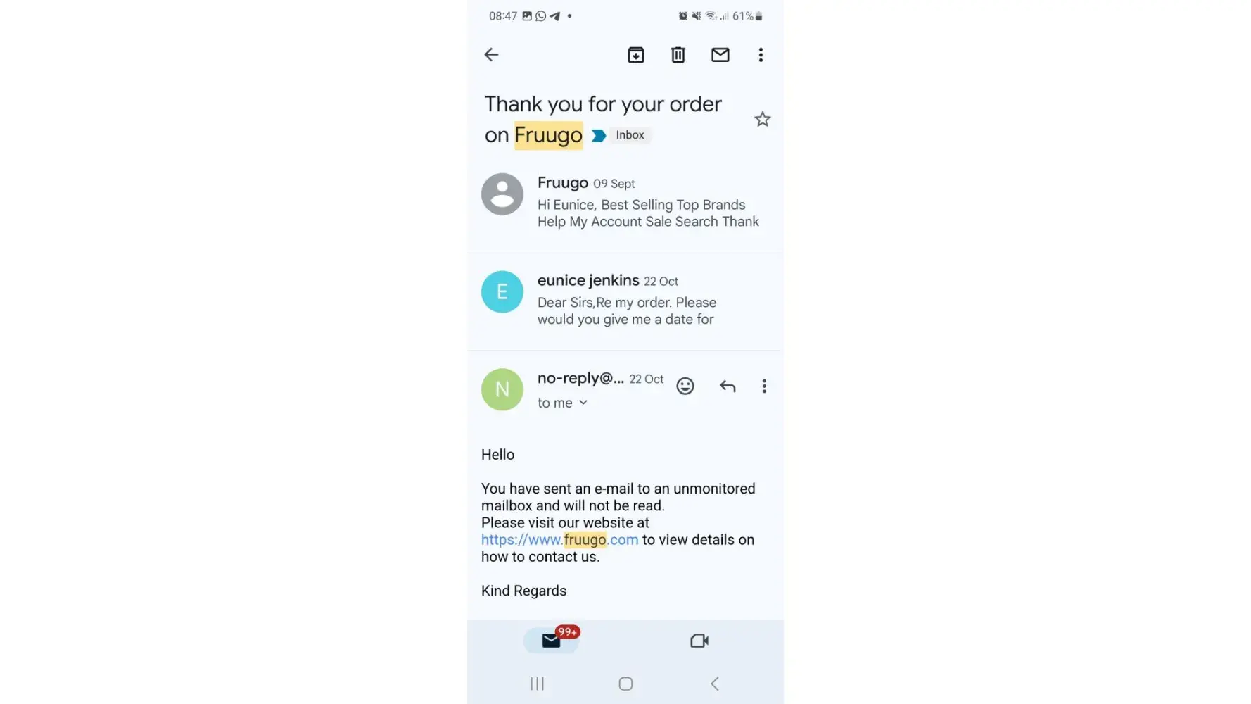On the 14th June I ordered a wig from fruugo. I used my email address, the order was confirmed and I got the reference number so that I could track my order. To my surprise when I was tracking my order on the 4th my email was no longer acceptable, but it's the same email address I have been using. So now I can't track the whereabouts of the order and fruugo doesn't send any emails to me anymore. I don't know what to do in order to get my order.