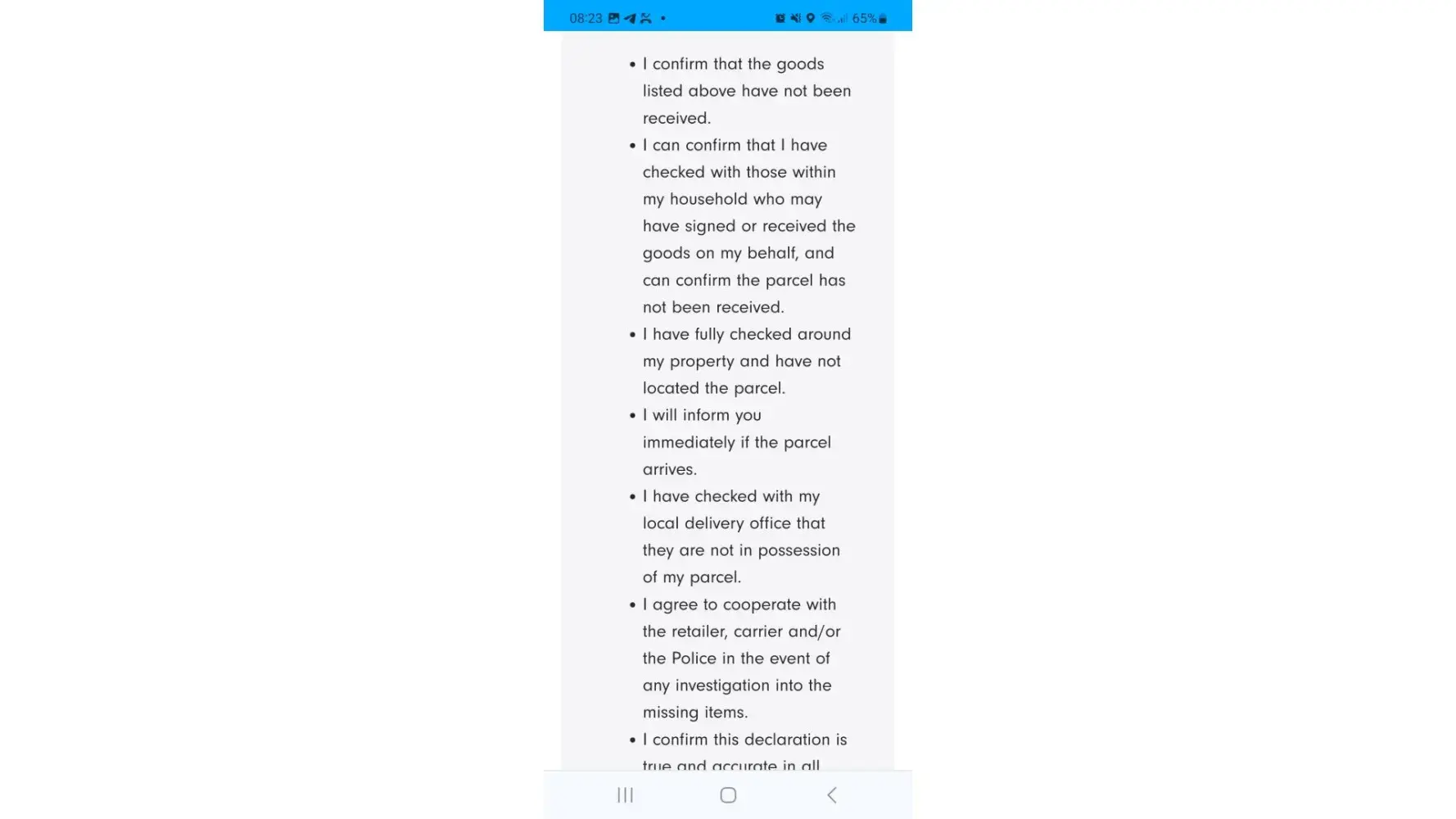 The automated questionnaire about the missing item will not submit. It continually says, an error has occurred, please try again later!