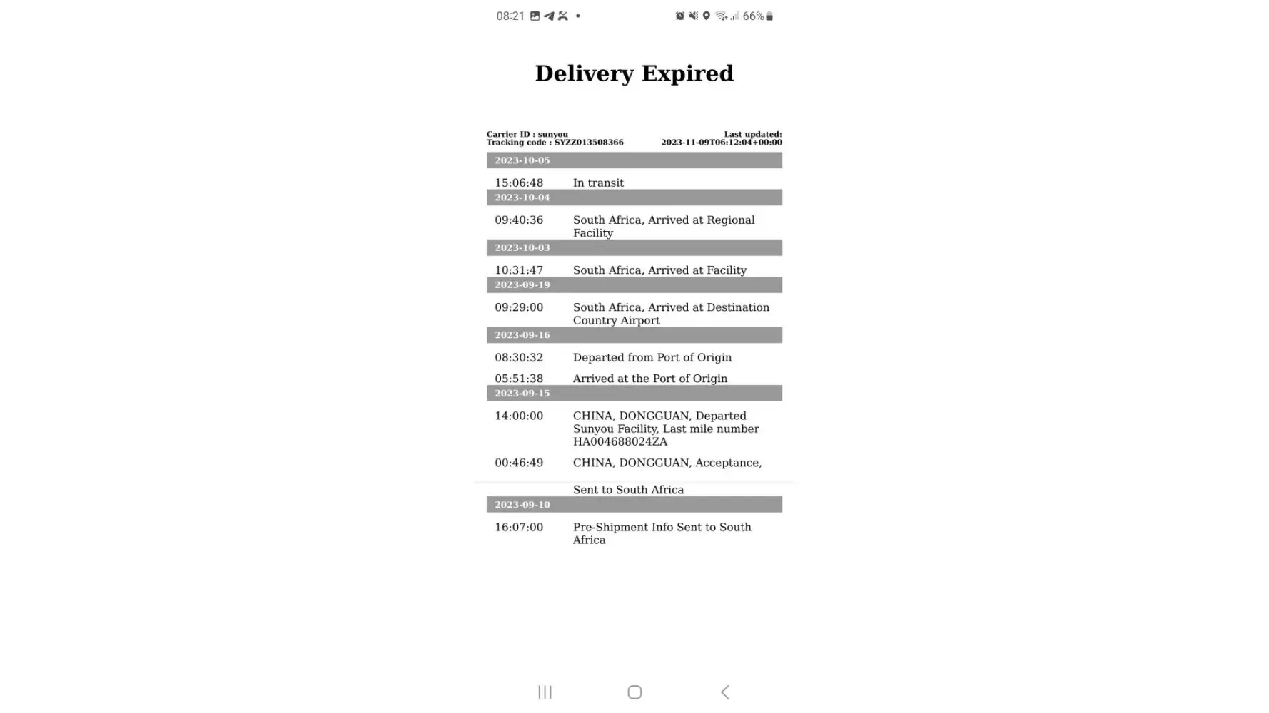 Please can you assist as to when I will receive it. The tracking systems says it have arrived in South Africa on the 3 Sept and then nothing since.