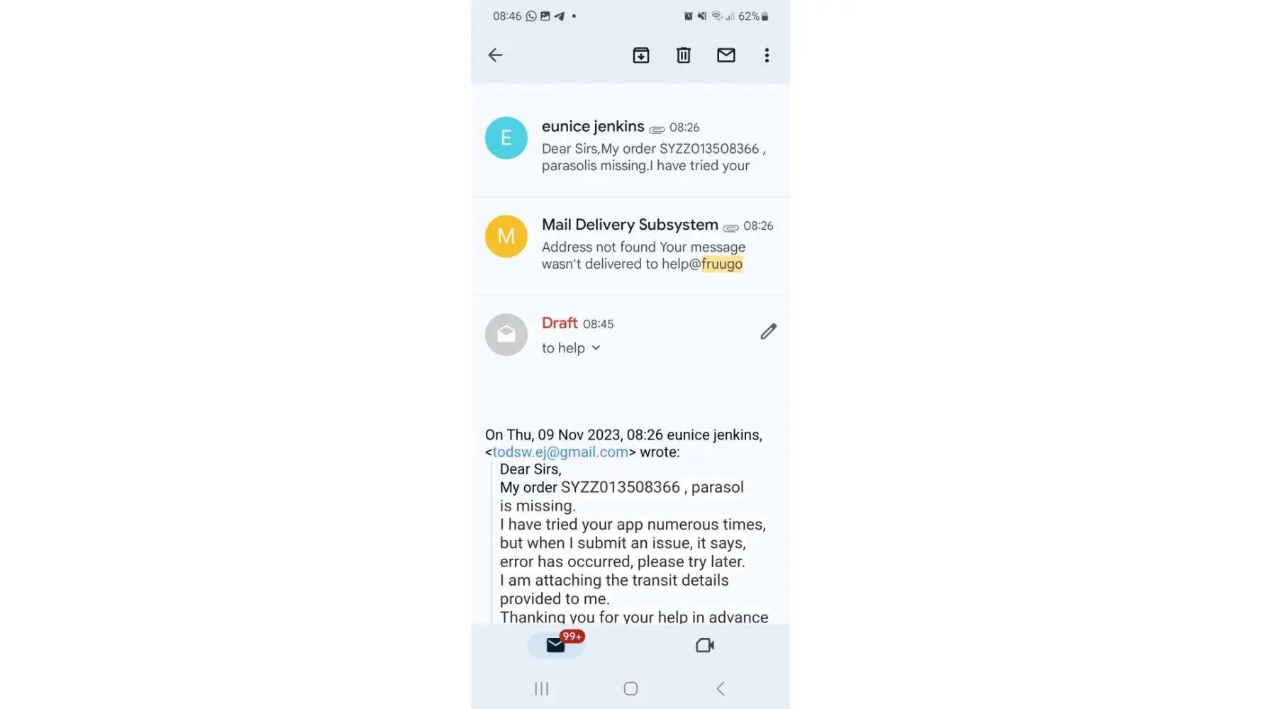 Desired outcome: If the item has been lost in transit, please refund. I would like my money refunded.Also a warning to other buyers to be very careful about trusting this company.