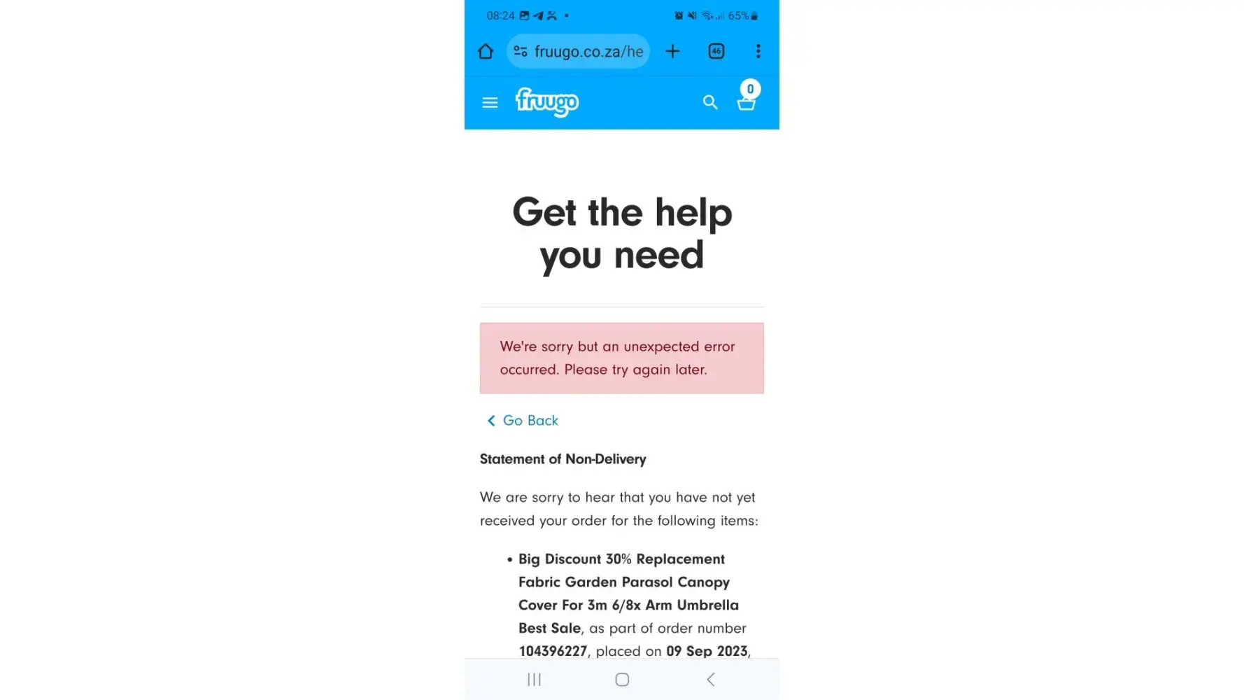 And now when I want to write again to Fruugo the site answers that the problem has been taken care of, so it blocks the possibility to write again.