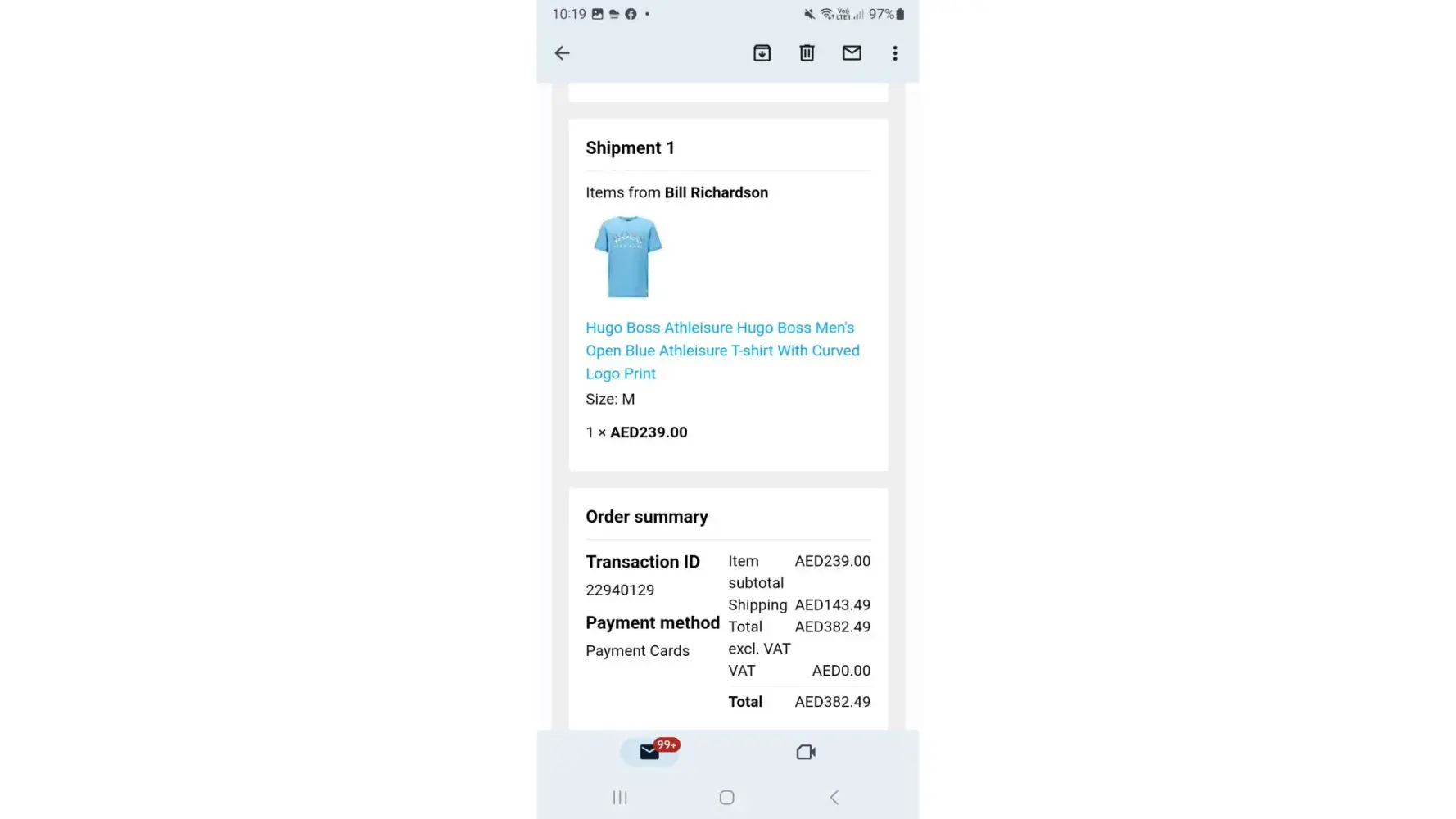 I ordered from Fruugo T-shirt Boss on 15 August, and payment was done by my credit card .
