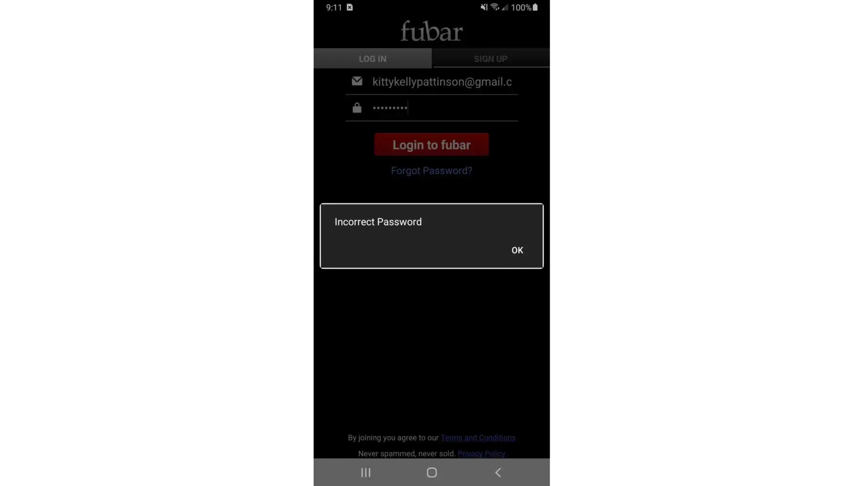 This really isn't a complaint. I just need to find out how to recover my fubar account when the email doesn't exist and have forgotten the password to log in. Please help me recover my account. Thank you