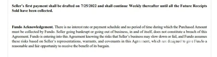 Upon "lending" a small amount of "debt disbursements" stating in their contract no repayment schedule, not a loan, and a 100.00 charge for accessing funds in 24hours, placing a lien on my name, and Fundo representatives inflating their employment dispositions, I have begun an investigation via Attorney General, secretary of state and other government liaisons to assist me in their illegal financial tactics. While I remain self representing if Fundo refuses to resolute I will have no choice but to litigate. Steer clear of this company. They are a dangerous option as a financial vehicle.