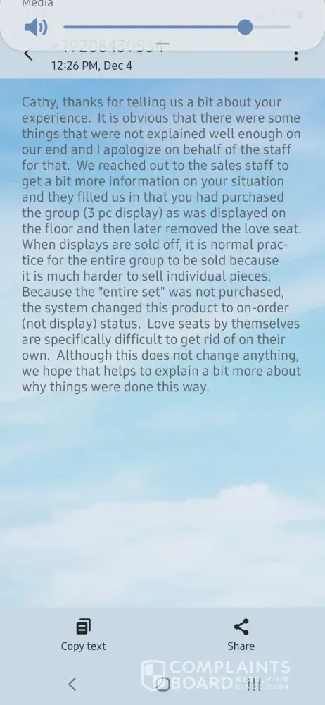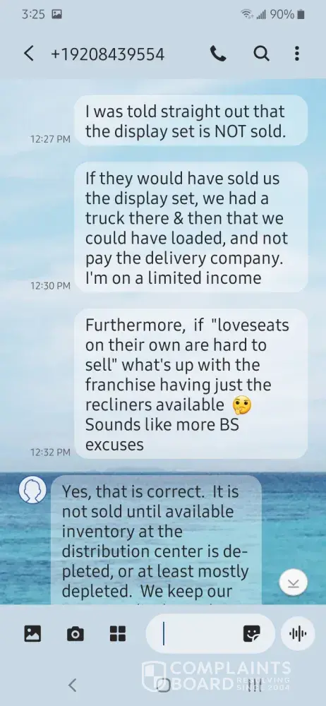 5. We decide to go in person and ask why there was so much delay. We spoke with Lilliana. She said the furniture was coming from overseas and most likely the delay was due to Covid. Is Covid just the excuse for everything? The first time we bought furniture we were in the thick of the covid pandemic and the furniture still arrived within a month a half.